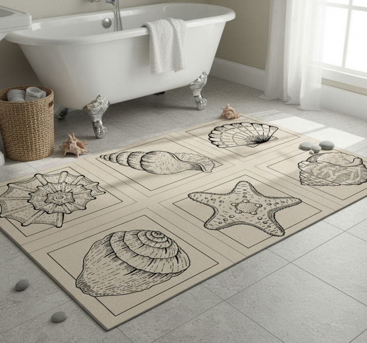 Et bad vinyl teppe med marineliv og skjellmotiv tilfører en unik sjarm til baderommet ditt! Dette bad vinyl teppe skaper en beroligende atmosfære og gir en følelse av å være ved havet. Med sitt stilige design kan du enkelt friske opp innredningen, og gi rommet et personlig preg. La dette teppet bli midtpunktet i badet ditt og opplev hvordan det forvandler hele rommet!