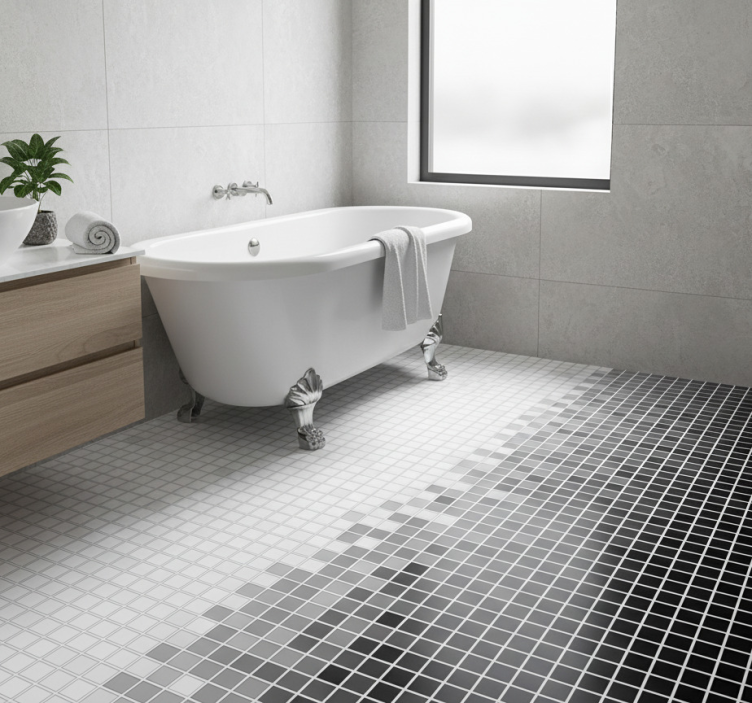 Bad vinyl teppe med små ensfargede mosaikker