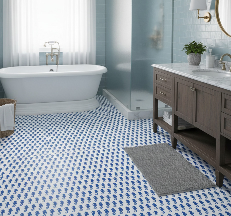 Et Bad vinyl teppe sjøhest dusj bad vinyl teppe er ikke bare en praktisk løsning, men også en inspirerende dekorasjonselement som kan forvandle badet ditt til en oase av stil. Dette teppet gir en unik atmosfære, og gjør at selv de enkleste bad blir til et luksuriøst tilfluktssted. Med sitt iøynefallende design vil det garantert gjøre inntrykk på gjester og skape en hyggelig stemning.