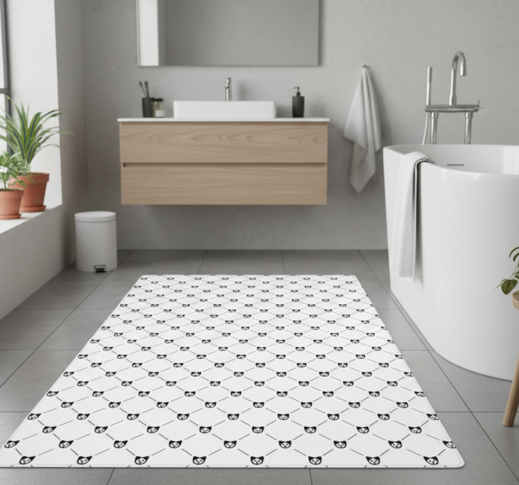 Bad vinyl teppe svart og hvitt geometrisk hundemønster