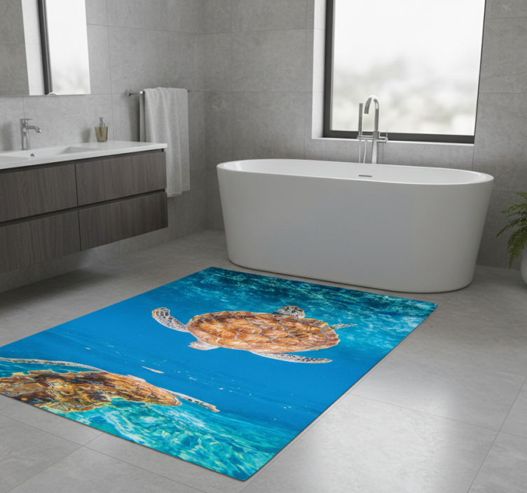 Referanse:: R23577Oppdag skjønnheten av naturen med vårt Bad vinyl teppe vakker skilpadde under vann! Dette unike designet fanger det magiske under vann med en nydelig skilpadde som svømmer blant fargerike koraller. Med sine livlige farger og detaljerte grafikk, tilfører dette teppet et friskt pust til ethvert rom, samtidig som det gir en følelse av ro og harmoni.