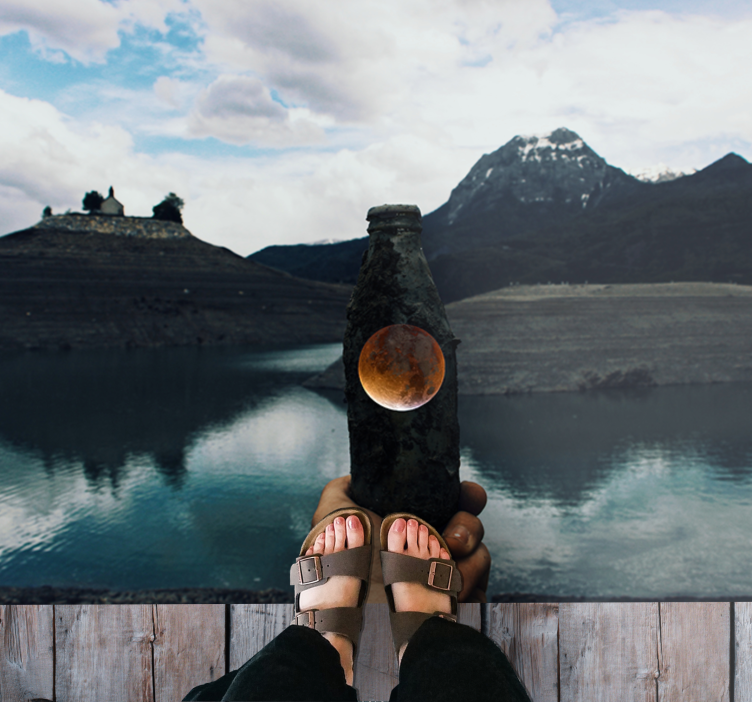 med flaskelys. Få dette designet og nyt utseendet til gulvene dine. Endre estetikken og oppdag noe annerledes i huset ditt. Dette er mer enn bare en enkel dekorasjon. Dette produktet er laget med de beste materialene som finnes på markedet. Dette vil se bra ut i alle rom. Bruk den i stuen, soverommet, badet eller til og med kjøkkenet. Legges i gulvet for å beskytte og forskjønne. Er laget med slitesterke materialer og anti-skli effekt. Naturlandskap som vil se flott ut. Innsjø med fjelllandskapvinyl teppe
