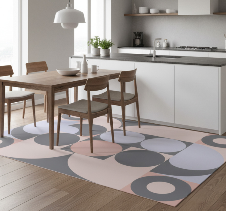 Vårt Geometriske sirkler vinyl teppe kjøkken er ikke bare et teppe; det er en dekorativ element som kan transformere ethvert rom! Det tilfører en moderne stil til kjøkkenet og skaper et innbydende miljø. Med dets holdbare og attraktive design, gjør det det enkelt å skape en koselig atmosfære. Dette vinyl teppe kjøkken gir også en flott bakgrunn for sosiale sammenkomster og familieaktiviteter, og ser fantastisk ut under kjøkkenmøblene!