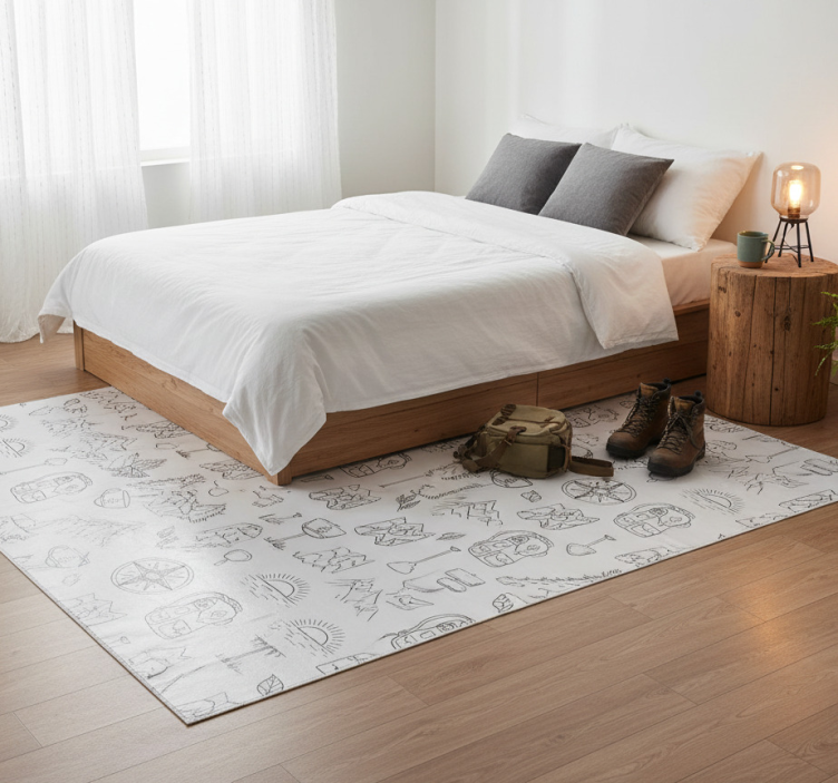 Håndtegnet kompass og fjellmotiv vinyl teppe soverom