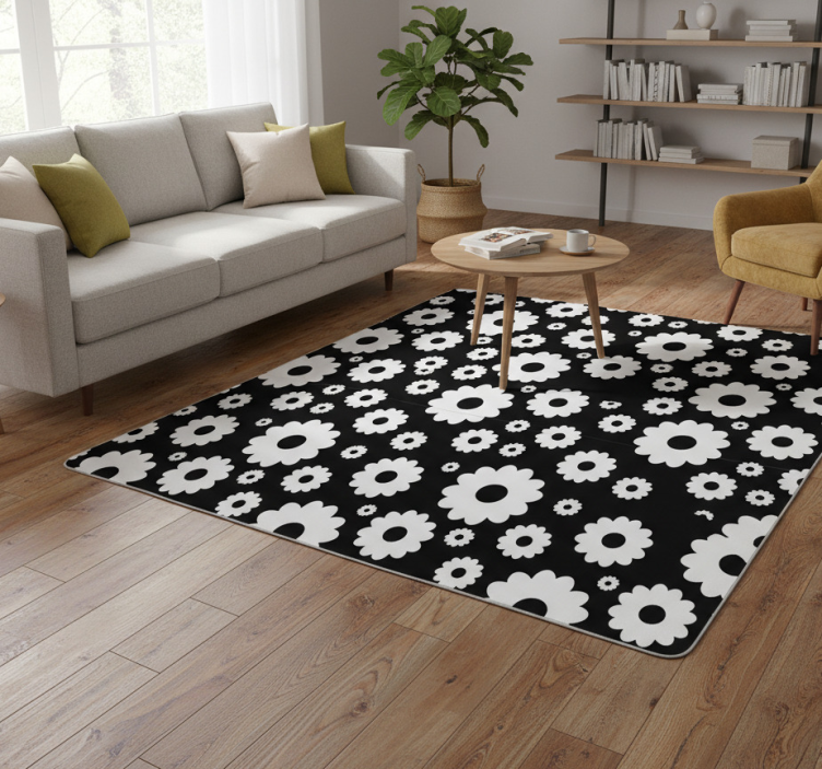 Hvite og svarte tusenfryd vinyl teppe blomster og planter