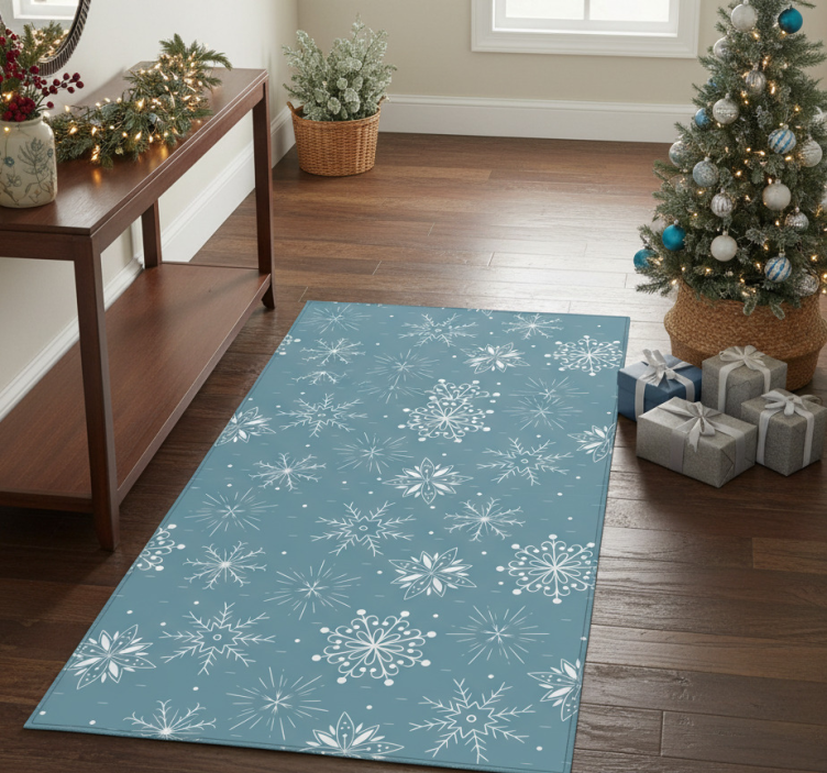 Jul vinyl teppe med dekorative blå og hvite snøfnugg