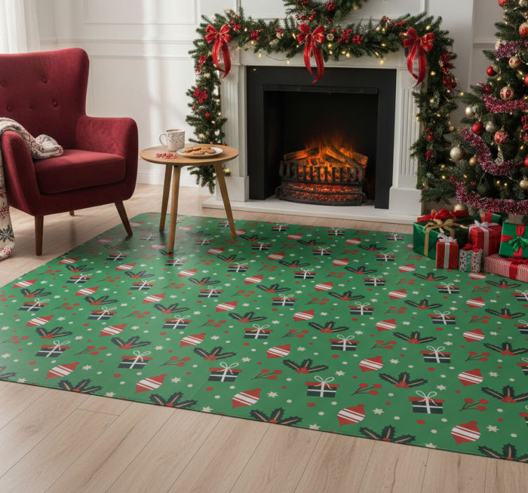 Et Jul vinyl teppe med julegodteri mønster grønn laptop Jul vinyl teppe er den perfekte løsningen for å friske opp innredningen i hjemmet ditt. Dette teppet tilfører umiddelbar varme og karakter til rommet, og skaper en innbydende følelse for både familie og gjester. La det festlige designet inspirere til gode minner og glede i løpet av høytiden! Du vil elske å ha dette teppet som en del av julefeiringen!