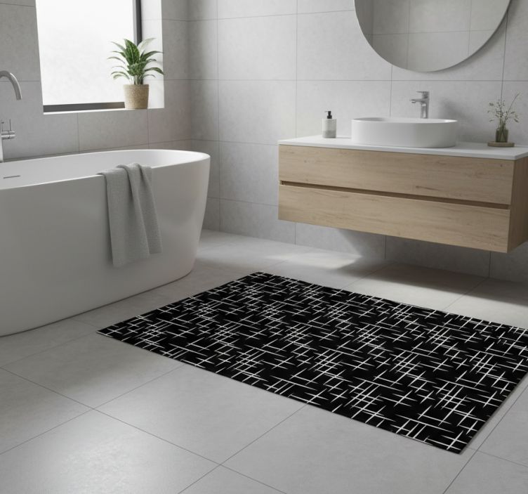Det moderne linjer bad vinyl teppe er den ideelle løsningen for å tilføre en moderne og stilfull touch til ditt bad. Med sin enkle rengjøring og elegante design, kan du enkelt skape en harmonisk atmosfære. Teppets grafiske mønster gir liv til rommet, og det er et utmerket valg for de som ønsker å kombinere stil med praktisk funksjonalitet. Gjør badet ditt til et fristed hvor du kan slappe av og nyte.