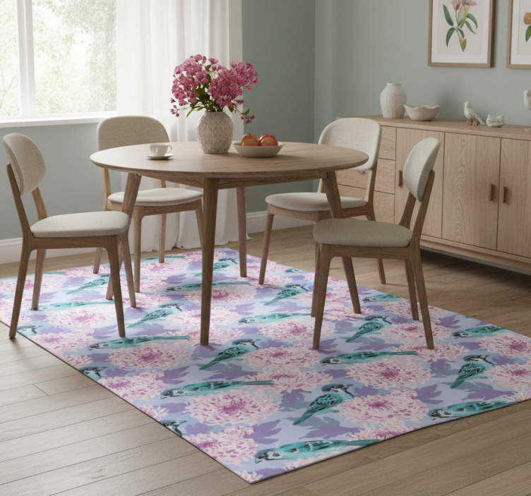 Det Rosa hageblomster med fugler vinyl teppe blomster og planter er ikke bare et teppe, men et kunstverk som lyser opp ethvert rom. Det gir en unik og livlig dekorasjon som kan forvandle stuen, barnerommet eller gangen til et vakkert fristed. Med sitater fra naturen i ditt hjem, vil dette vinyl teppet blomster og planter inspirere glede og kreativitet hver dag!