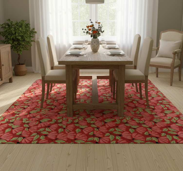 Det Vintage rødt mønster vinyl teppe blomster og planter er ikke bare et teppe; det er en stilfull dekorasjonsløsning som kan forvandle ethvert rom. Med sitt iøynefallende design vil det vinyl teppe blomster og planter tilføre liv og energi til hjemmet ditt. Det er perfekt for å skape en koselig stemning, og vil garantert imponere gjestene dine! La dette teppet bli midtpunktet i rommet og gi hjemmet ditt en ny dimensjon!