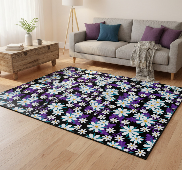 Det vinyl teppet blomster og planter blomster på svart bakgrunn er en perfekt løsning for deg som ønsker å tilføre et unikt preg til hjemmet ditt. Teppet gir liv til rommet med sine fargerike blomster og planter, og den mørke bakgrunnen fremhever designet på en imponerende måte. Uansett om det er i stuen, gangen eller barnerommet, vil dette teppet skape en varm og innbydende atmosfære. La kreativiteten blomstre med dette stilige teppet!