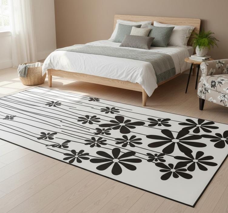 Det Store svarte blomster vinyl teppe blomster og planter er perfekt for dekorasjon og tilfører umiddelbart karakter til ethvert rom. Med sitt stilige design kan dette vinyl teppe blomster og planter bli et blikkfang i stuen, soverommet eller gangen. Det gir en unik atmosfære og kan enkelt kombineres med ulike interiørstiler. Forvandle hjemmet ditt med dette enestående teppet!