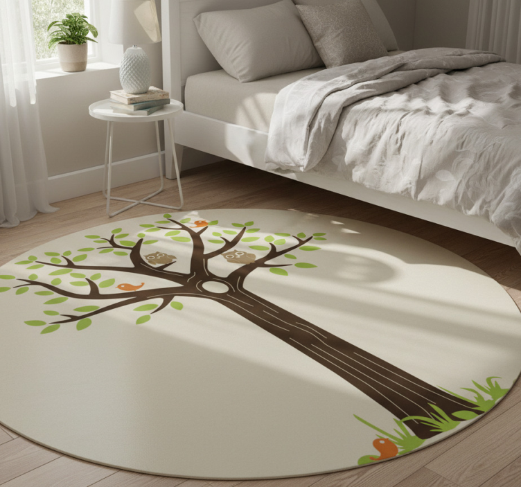 Ugler og trær vinyl teppe blomster og planter