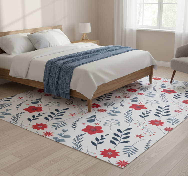 Rød og hvit mønster vinyl teppe blomster og planter