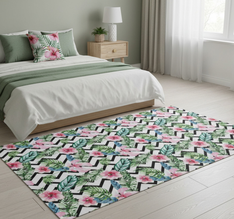 Grønn tropisk sikksakk vinyl teppe blomster og planter