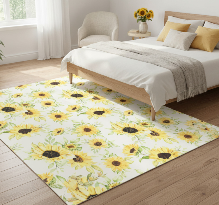 Referanse:: R20790Oppdag vårt fantastiske Vannfargede solblomster vinyl teppe blomster og planter som forvandler ethvert rom til en livlig oase! Dette unike designet kombinerer fargerike solblomster med stilige planter, og gir et friskt og innbydende preg til hjemmet ditt. Med sitt grafiske uttrykk og glitrende farger skaper dette vinylteppet en atmosfære av glede og kreativitet.