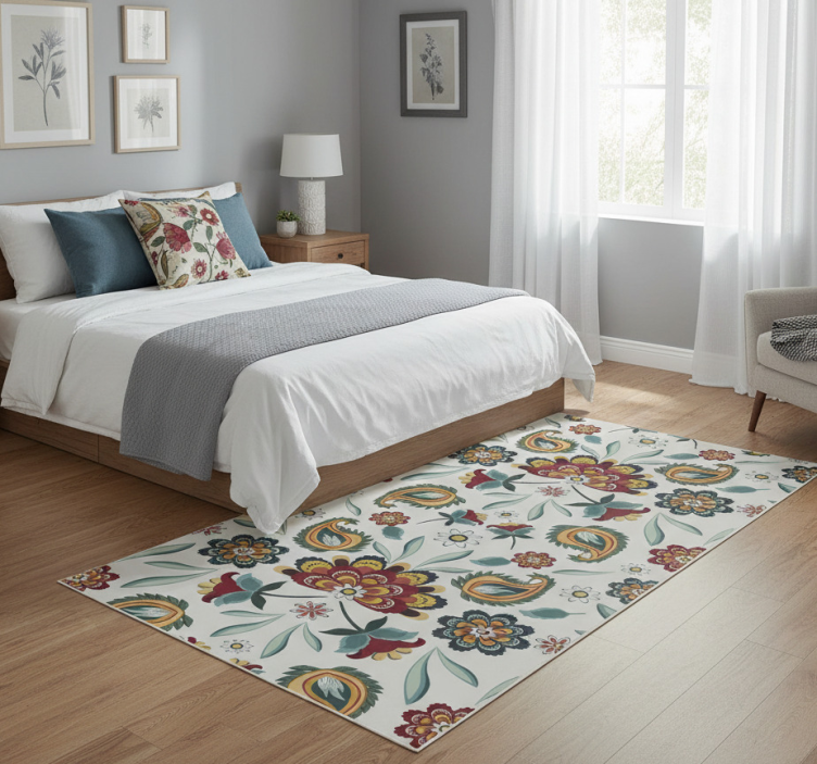 Det etniske blomsterdesign vinyl teppe blomster og planter er ideelt for å skape en varm og innbydende atmosfære i ethvert rom. Med sitt fargerike og livlige design gir det en spesiell sjarm til stuen, soverommet eller kontoret. Dette vinyl teppe blomster og planter er perfekt for å fremheve din personlige stil og gir et friskt pust til innredningen. La dette teppet bli hjertet i hjemmet ditt og inspirere til hygge og glede!