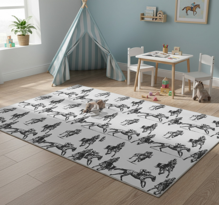 Referanse:: R20032Velkommen til en verden av stil og komfort med vårt vinyl teppe dyr grå vestlige hester! Dette fantastiske teppet kombinerer en elegant grå farge med et inspirerende design av vestlige hester, noe som gir ethvert rom et unikt preg. Med sin grafiske utforming skaper dette teppet en harmonisk atmosfære, perfekt for både moderne og tradisjonelle interiører. Det er ikke bare et dekorativt element, men også en praktisk løsning for ethvert hjem!