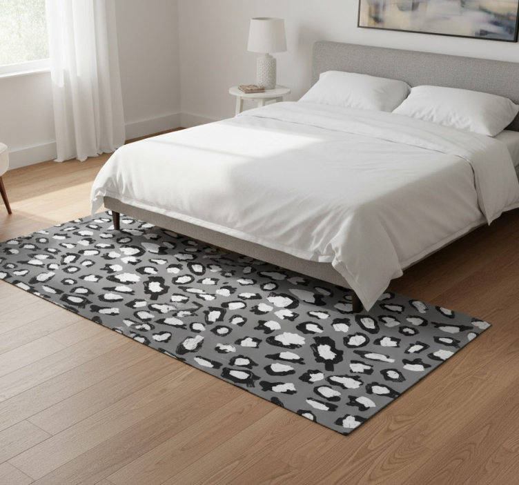 Vinyl teppe dyreavtrykk grå og hvit leopard