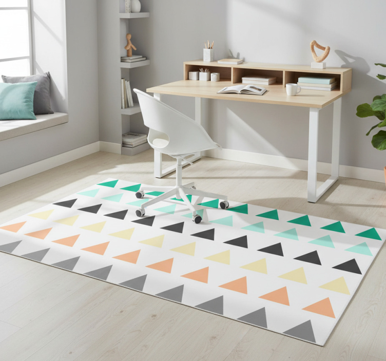 Referanse:: R22290Oppdag det stilige og moderne vinyl teppet geometrisk pakke med 30 små trekanter, som tilfører et unikt preg til ethvert rom! Dette teppet har et iøynefallende grafisk design med små trekanter som skaper en livlig atmosfære. Med sine farger og former kan dette teppet enkelt tilpasses ulike interiørstiler, og det vil uten tvil bli et blikkfang i hjemmet ditt!