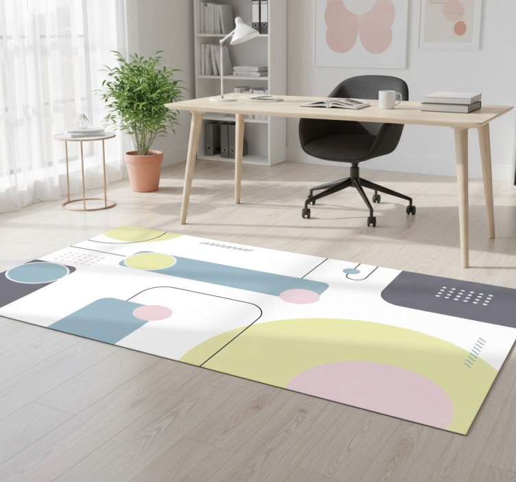 Dette vinyl teppet geometrisk pastell geometrisk bakgrunn er perfekt for å gi hjemmet ditt et friskt og moderne preg! Med sitt stilige design og varierte farger, kan det enkelt tilpasses ulike interiørstiler. Enten du ønsker å dekorere stuen, barnerommet eller gangen, vil dette vinyl teppet geometrisk skape en inspirerende atmosfære. Det er en enkel og rimelig løsning for å løfte rommet og gjøre det mer koselig!