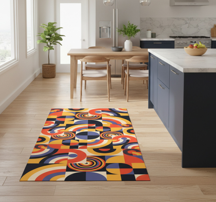 Vinyl teppe kjøkken fargerike bauhaus sirkler