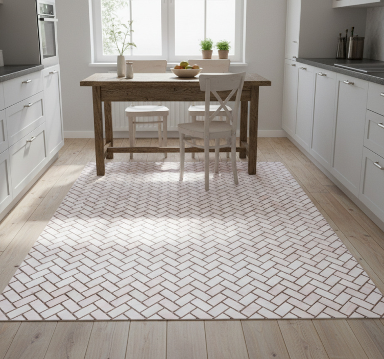 Et vinyl teppe kjøkken fiskebensmarmorkeramikk er den perfekte løsningen for å heve innredningen i kjøkkenet ditt! Med sitt stilige design gir det et moderne preg og skaper en innbydende atmosfære. Teppets termiske isolasjon bidrar til å holde rommet varmt, og det er enkelt å rengjøre, noe som gjør det ideelt for daglig bruk. La dette teppet bli hjertet av ditt kjøkken og opplev hvordan det forvandler rommet!