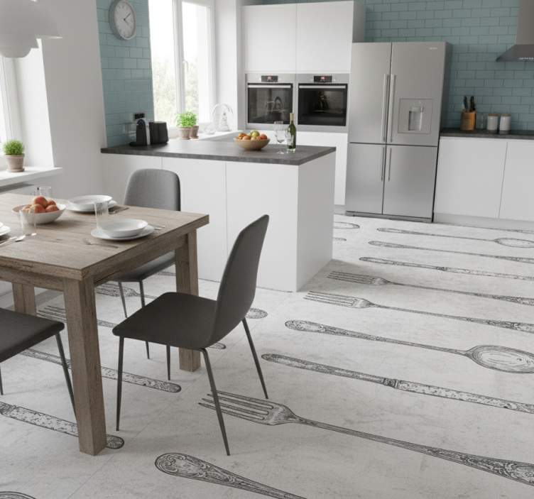 Referanse:: R23809Oppdag vårt stilige vinyl teppe kjøkken grå bestikk, designet for å gi et moderne preg til ditt kjøkken. Med et grafisk mønster som kombinerer eleganse og funksjonalitet, er dette teppet både praktisk og estetisk tiltalende. Det er enkelt å rengjøre, antiskli for sikkerhet, og har en ripebestandig overflate som beskytter gulvet ditt mot daglig slitasje.