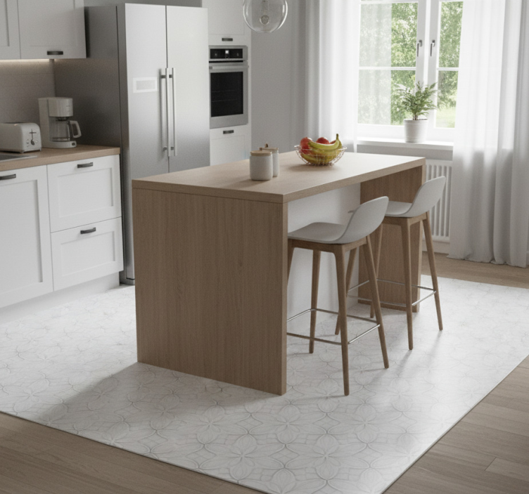 Det vinyl teppet kjøkken med blomster i minimalistiske hexagoner gir en unik mulighet til å forvandle kjøkkenet ditt til et stilfullt og inspirerende rom. Med sin fargerike blomsterdesign og geometriske former kan dette teppet enkelt bli et blikkfang, og skape en varm atmosfære for både familie og gjester. La dette vinyl teppet kjøkken bli hjertet i hjemmet ditt og bring naturen inn i ditt daglige liv!