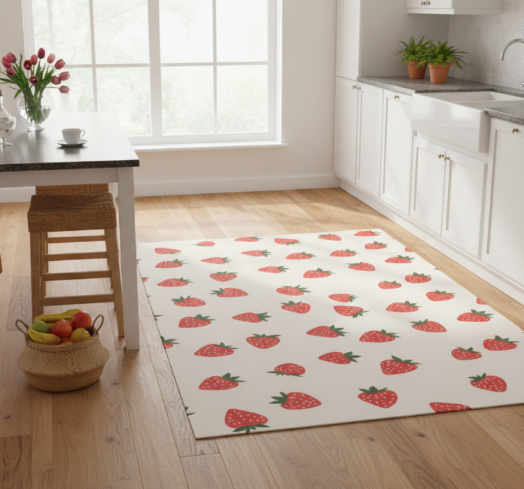 Oppdag det vakre vinyl teppet kjøkken med kirsebærdesign, som kombinerer grafisk eleganse med praktiske fordeler! Dette teppet har et friskt kirsebærdesign som lyser opp ethvert kjøkken, og gir en livlig atmosfære. Det er antiskli, ripbestandig, og beskytter gulvet mot slitasje, noe som gjør det til et perfekt valg for travle kjøkken.