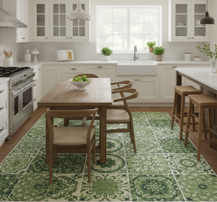 Vinyl teppe kjøkken mosegrønn kaleidoskopeffekt