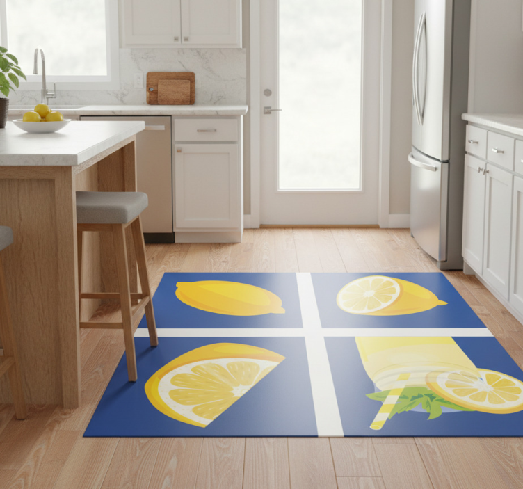 Referanse:: R23635Oppdag vårt fantastiske vinyl teppe kjøkken sitronjuice fliser som kombinerer stil og funksjonalitet på en unik måte! Dette grafiske designet fremhever friske sitroner og livlige fliser, noe som gir en sprudlende atmosfære til ditt kjøkken. Med sin enkle rengjøring, antiskli-egenskaper, og beskyttelse av gulvet, er dette teppet en perfekt løsning for både design og praktisk bruk.