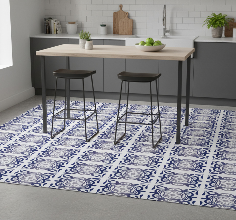 Vinyl teppe kjøkken spansk flis antikk blå