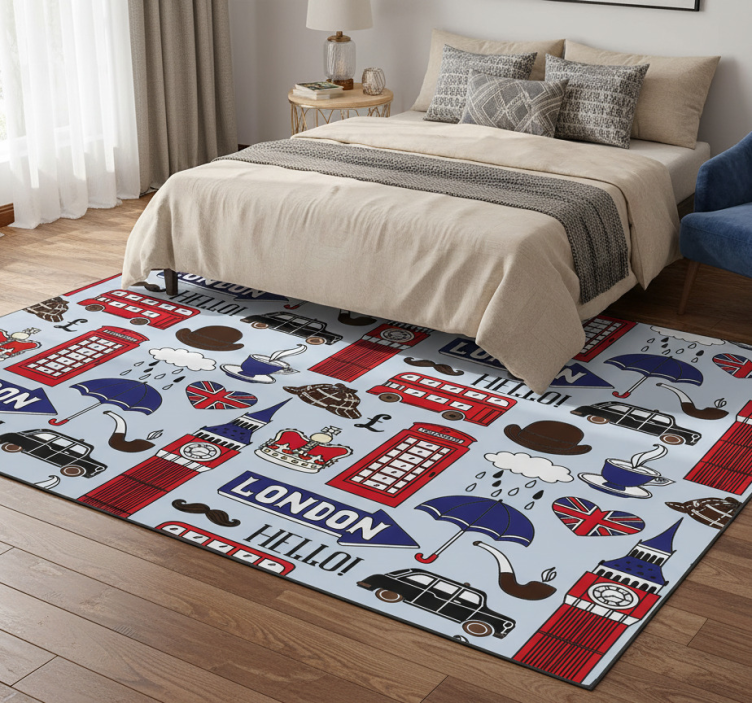 Referanse:: R21804Oppdag det stilige vinyl teppet soverom best of british london som kombinerer moderne design med klassiske britiske elementer. Dette teppet har et unikt grafisk mønster som gir rommet en sofistikert atmosfære. Med sine antiskli egenskaper, ripestyrke og termiske isolasjon, er dette teppet ikke bare vakkert, men også funksjonelt!