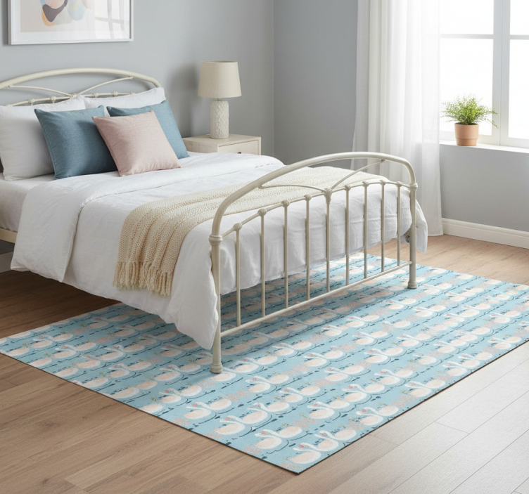 Vinyl teppe soverom svaner i kjærlighet mønster blå
