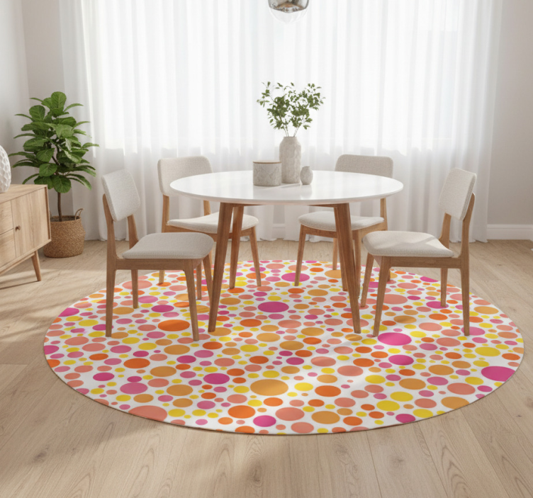 Referanse:: R21202Oppdag vårt fantastiske vinyl teppe spiserom varme bobler, designet med et unikt og grafisk uttrykk som kombinerer lekne bobler med varme farger. Dette teppet tilfører en koselig atmosfære til spiserommet, samtidig som det er både praktisk og stilfullt. Med sine rike detaljer og et moderne preg, er det perfekt for enhver innredning!