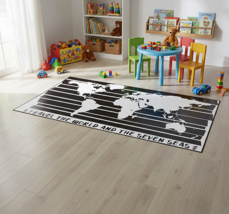Referanse:: R23185Oppdag vårt fantastiske vinyl teppe verdenskart reis jorden, designet for å ta deg med på en visuell reise rundt kloden! Med sitt grafiske design som inkluderer detaljerte landformer, fargerike hav og en stilren layout, er dette teppet ikke bare et praktisk valg, men også et kunstverk som vil pryde ethvert rom. Vinyl teppe verdenskart kombinerer både stil og funksjonalitet, og gir et unikt preg til stuen, barnerommet eller kontoret!
