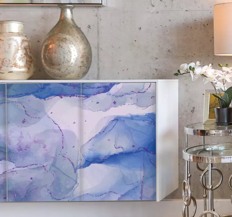 Oppdag vårt abstrakt klistremerke flytende blå mønster, hvor grafisk design møter kunstnerisk uttrykk! Dette unike klistremerket har en fargepalett som blander dype blåtoner med en vakker maletekstur, som gir et friskt og moderne inntrykk til ethvert rom. Med sine fargerike og væskelignende former er dette produktet perfekt for å tilføre liv til møbler og interiør!