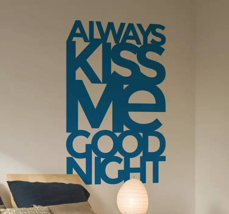 Skap en personlig og kjærlig atmosfære på soverommet ditt med dette fantastiske kysse meg godnatts klistremerket. Dette tilbudsdekolet er designet for å gi soverommet ditt et personlig preg og en strålende atmosfære.