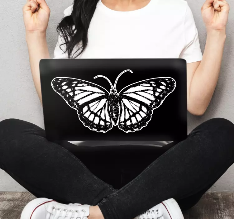Oppdag vårt bærbare klistremerke med elegant sommerfuglkunst, designet for å tilføre et kunstnerisk preg til enhver flate. Det unike grafiske designet kombinerer en monark sommerfugl i svart og hvitt, med et monokrom preg som symboliserer naturens skjønnhet. Dette klistremerket er mer enn bare en dekorasjon; det er en visuell opplevelse som forvandler rommet ditt!