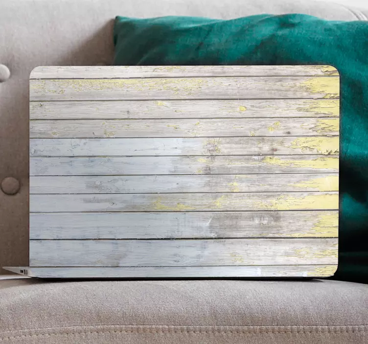Oppdag vårt fantastiske bærbare klistremerke med rustikk trefinish! Dette unike designet kombinerer en rustikk estetikk med en tre tekstur som minner om gammelt tre og planker. Med sine gul og hvit forvitrede toner, er dette klistremerket perfekt for din laptop og gir en varm og innbydende følelse til ethvert rom.