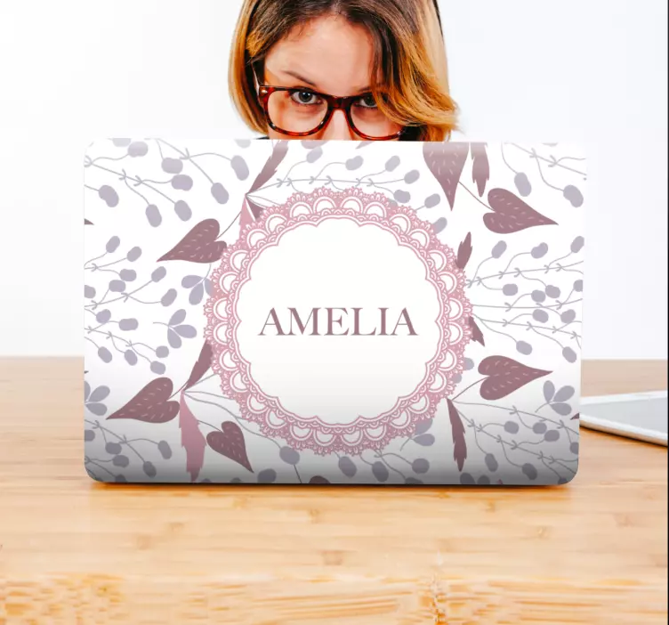 Oppdag vårt Bærbar klistremerke med tilpasset botanisk motiv, et elegant design som kombinerer grafiske elementer med naturens skjønnhet. Dette unike klistremerket inkluderer et mønster av blader, hjerter og grener, og gir en personlig tilpasset touch til din laptop. Med tekst som kan tilpasses, vil dette florale klistremerket garantert sette et preg på ethvert miljø!