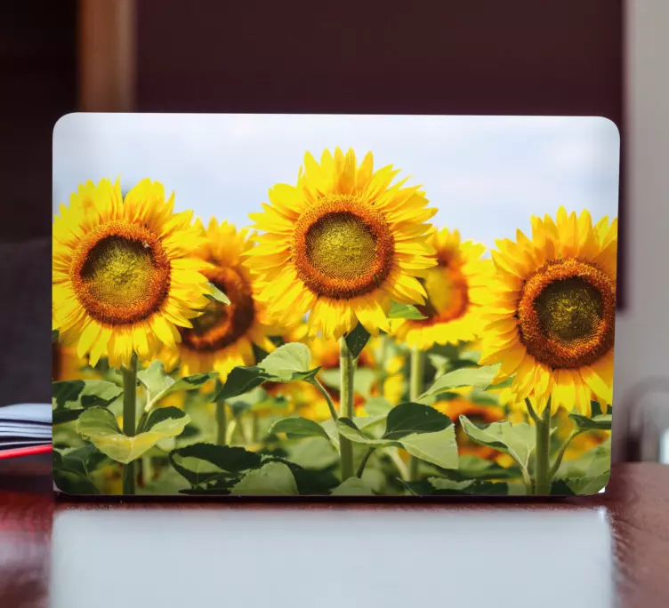 Oppdag vårt Bærbar klistremerke solsikkefelt scene, et unikt design som fanger essensen av den vakre naturen. Dette grafiske mesteverket kombinerer laptop med strålende solsikker og gule blomster i et levende felt. Det er den perfekte dekorasjonen for utendørs og vegetative omgivelser, som bringer liv og farge inn i ethvert rom!