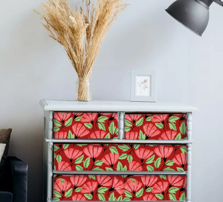 Å bruke Blomster grafisk overlegg klistremerke møbler er en enkel og effektiv måte å gi liv til rommet ditt. Klistremerker gir deg muligheten til å uttrykke din personlige stil og skape en unik atmosfære uten store omkostninger. Med sitt vakre design og farger kan dette klistremerket forvandle møbler og flater, og gjøre dem til et blikkfang i hjemmet. La deg inspirere av naturens skjønnhet og gi hjemmet ditt et friskt løft!