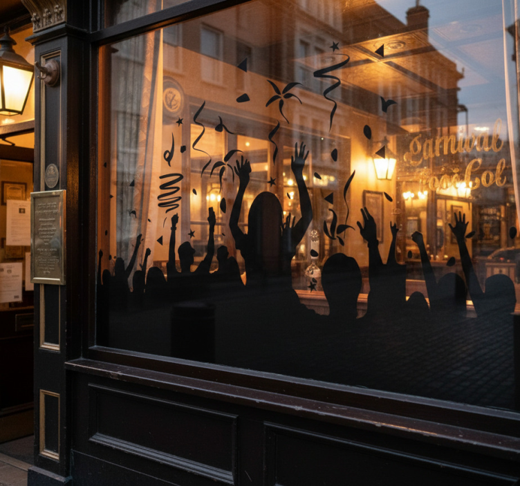 Butikkvinduer klistremerke festlig karnevalsfolkemengde
