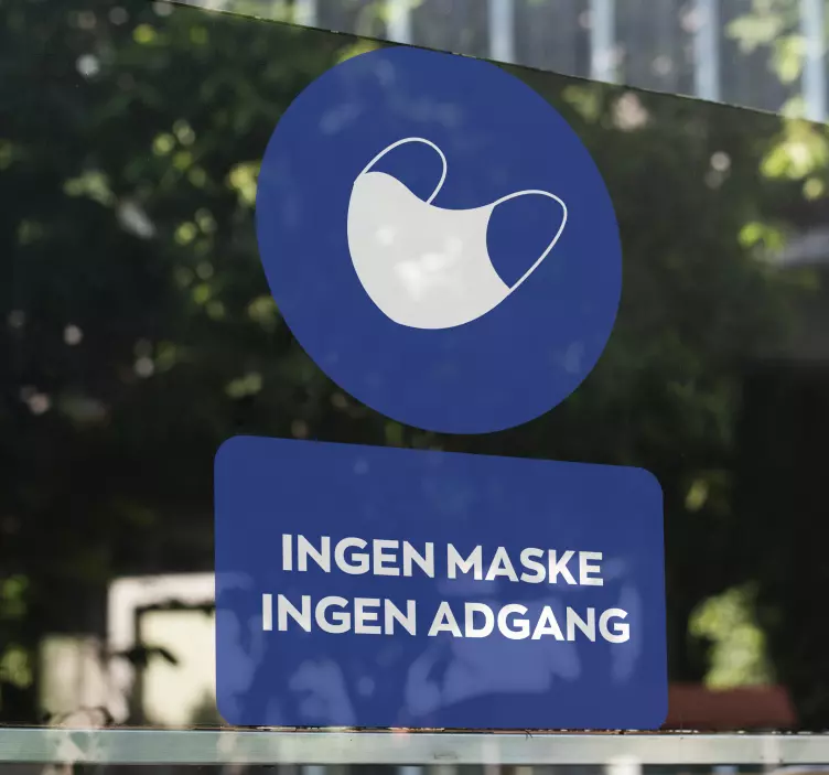 Dette glassvinduemerket har en blå bakgrunnsdesign med en maskeillustrasjon og tekst som oppfordrer folk til å bruke maske for sikkerhet. Det er enkelt å påføre på hvilken som helst flat overflate og kan fjernes når som helst uten å etterlate rester. Våre produkter er laget av høykvalitets vinyl som er slitesterk, enkel å påføre, og krøller ikke eller etterlater rester på overflaten. Designet kan kjøpes i en av størrelsene som er tilgjengelige i ønsket tilpasset størrelse.