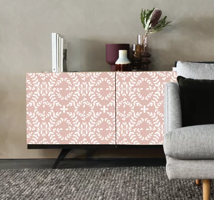 Oppdag vårt dekorative klistremerke med detaljert bladmotiv, som er en perfekt kombinasjon av moderne og elegant design. Med sine myke toner av rosa og detaljerte blader gir dette klistremerket en floral og abstrakt stil som vil forvandle ethvert rom. Den dekorative mønsteret tilfører en unik sjarm til møblene dine og skaper en varm atmosfære i hjemmet ditt!
