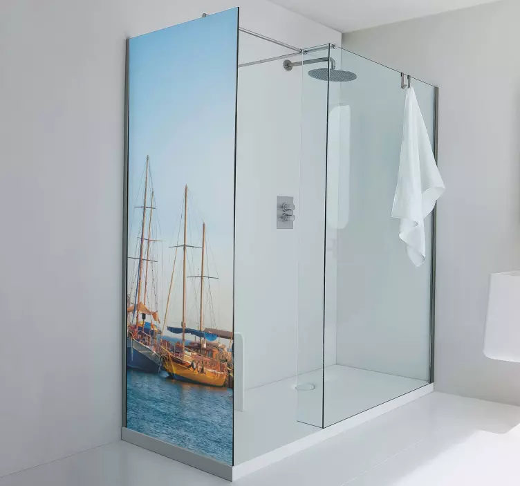 Forbedre utseendet på baderommet med vårt unike design som illustrerer en brygge med mange båter. Programmet er enkelt å bruke og vil gi en langvarig effekt. Ikke bekymre deg for at det vil blekne eller skrelle over tid, og du kan vaske eller rengjøre overflaten så mye som nødvendig uten problemer.