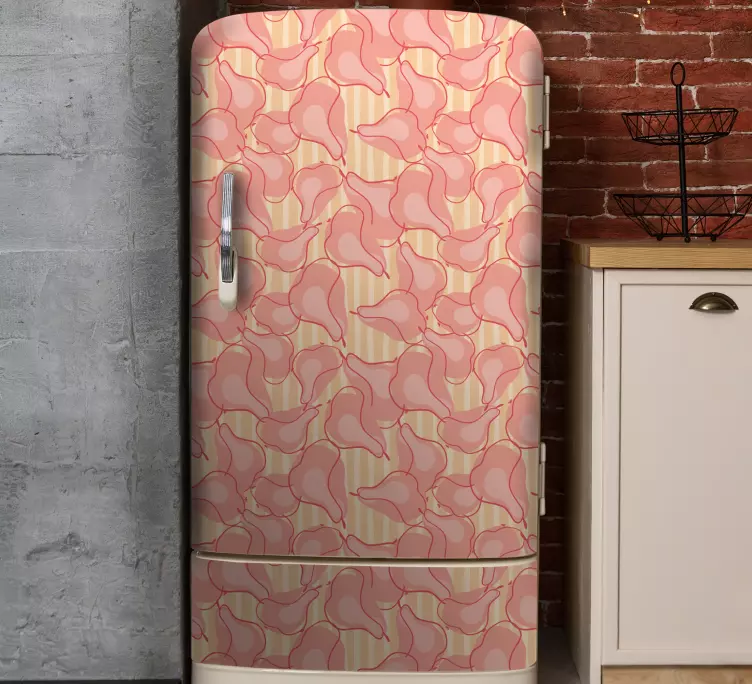 Velkommen til en verden av stil og eleganse med vårt Elegant fuglemønster kjøleskap klistremerke. Dette unike designet kombinerer doodle kunst med et mønster av fugler og pærer i myke rosa toner, som skaper et moderne og innbydende uttrykk for hjemmet ditt. Det gjentatte mønsteret tilfører en lekenhet som vil lyse opp ethvert rom, og gir deg muligheten til å personliggjøre kjøleskapet ditt med stil.