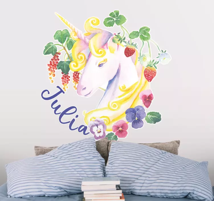 Enhjørningens hode over sekskantede fliser barn wall sticker